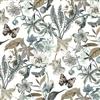 A garden of exotic blooms is visited by drifting butterflies in pattern Butterfly House.